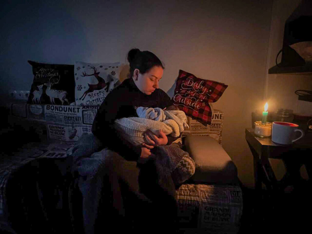 Maryana lives in Kyiv with her three-month-old daughter. Her apartment building has an individual gas boiler, but it runs on electricity. When power cuts 10 hours or more — which they often do — the temperature inside can drop to 13 degrees Celsius.