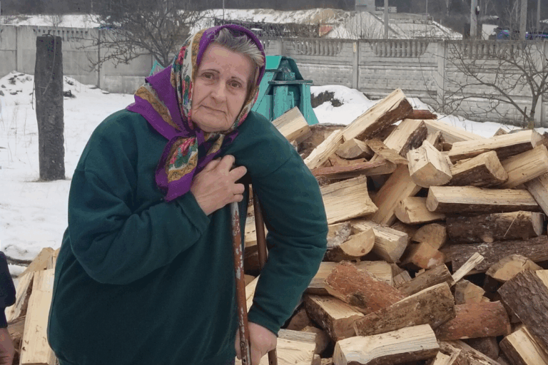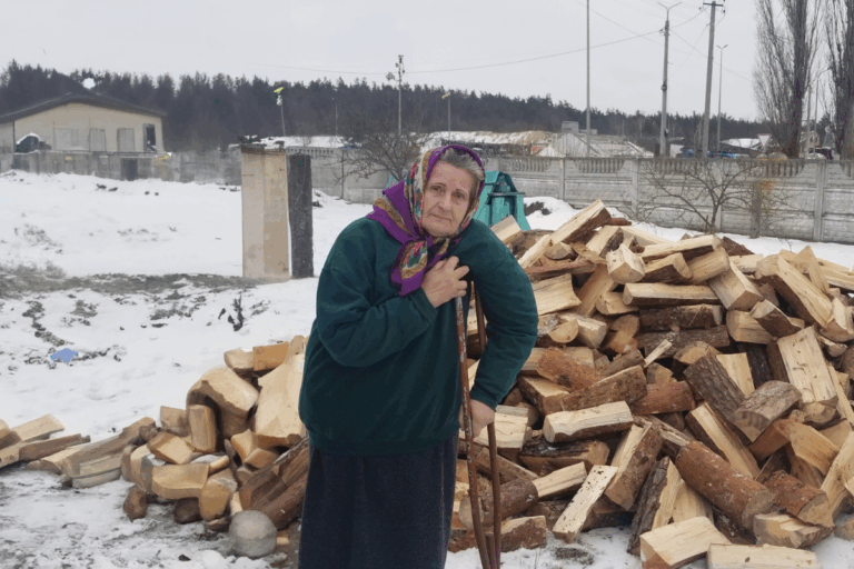 “De meeste mensen uit mijn dorp zijn al lang vertrokken. Ik ben maar alleen en zou niet weten waar ik heen moet. Het wordt wel steeds zwaarder. Al twee jaar heb ik geen elektriciteit, geen gas. Hulpverleners van Caritas komen regelmatig langs. Ze brengen me water, warme maaltijden en hout om het huis een beetje warm te houden. Dankzij hen voel ik me niet helemaal vergeten. Ik ben zó dankbaar voor deze hulp. Anders zou ik het niet redden.”