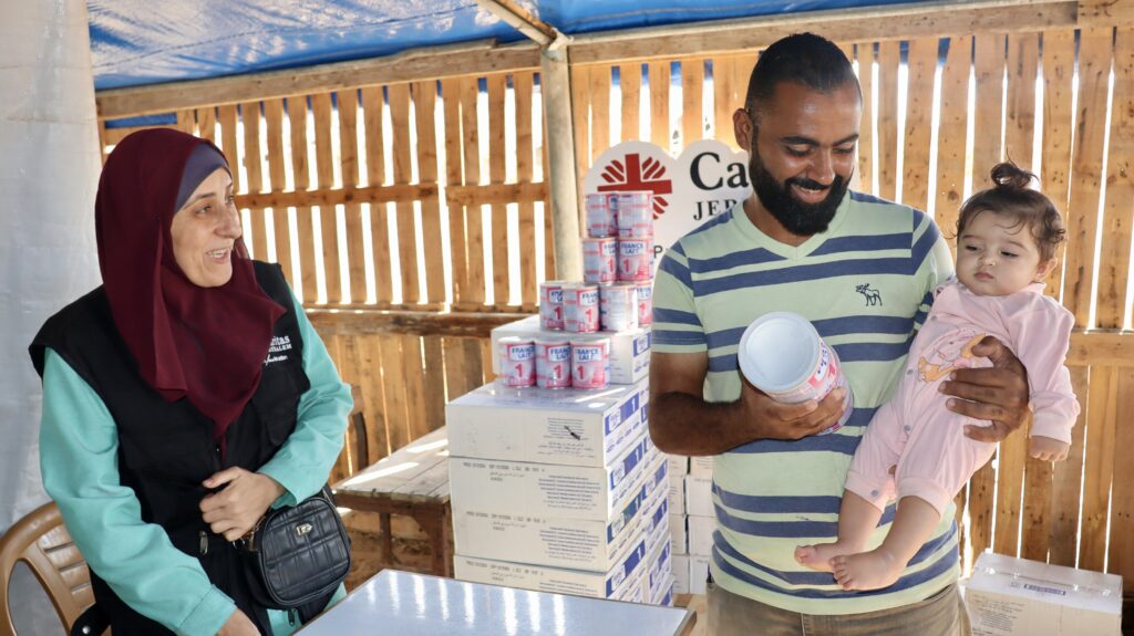 Vlak na het staakt-het-vuren in oktober 2022 deelde onze lokale partner blikken babyvoeding uit aan gezinnen met pasgeborenen en jonge kinderen. “Deze actie weerspiegelt onze missie en onze toeweiding aan menselijke waardigheid”, zegt Anton Asfar van Caritas Jerusalem.