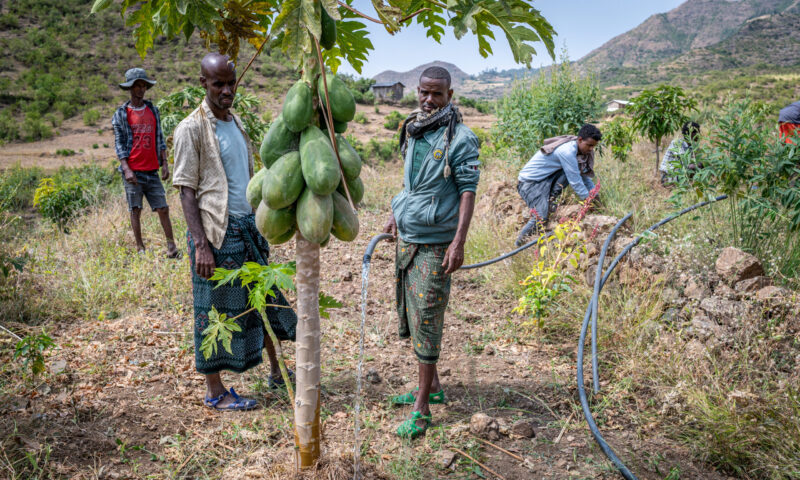 We bevorderen landbouwpraktijken die bestand zijn tegen klimaatverandering en ondersteunen oplossingen die de effecten van klimaatverandering verminderen en tegengaan. Ons doel is om duurzame landbouwsystemen te versterken met als doel ondervoeding te verminderen en de inkomens van mensen die van landbouwactiviteiten leven te verhogen.